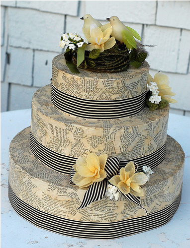 Depois de montar a estrutura do bolo falso com as três caixinhas, coloque o livro ou o objeto que você conseguiu em cima. Espere a colar secar por cerca de 1 hora.